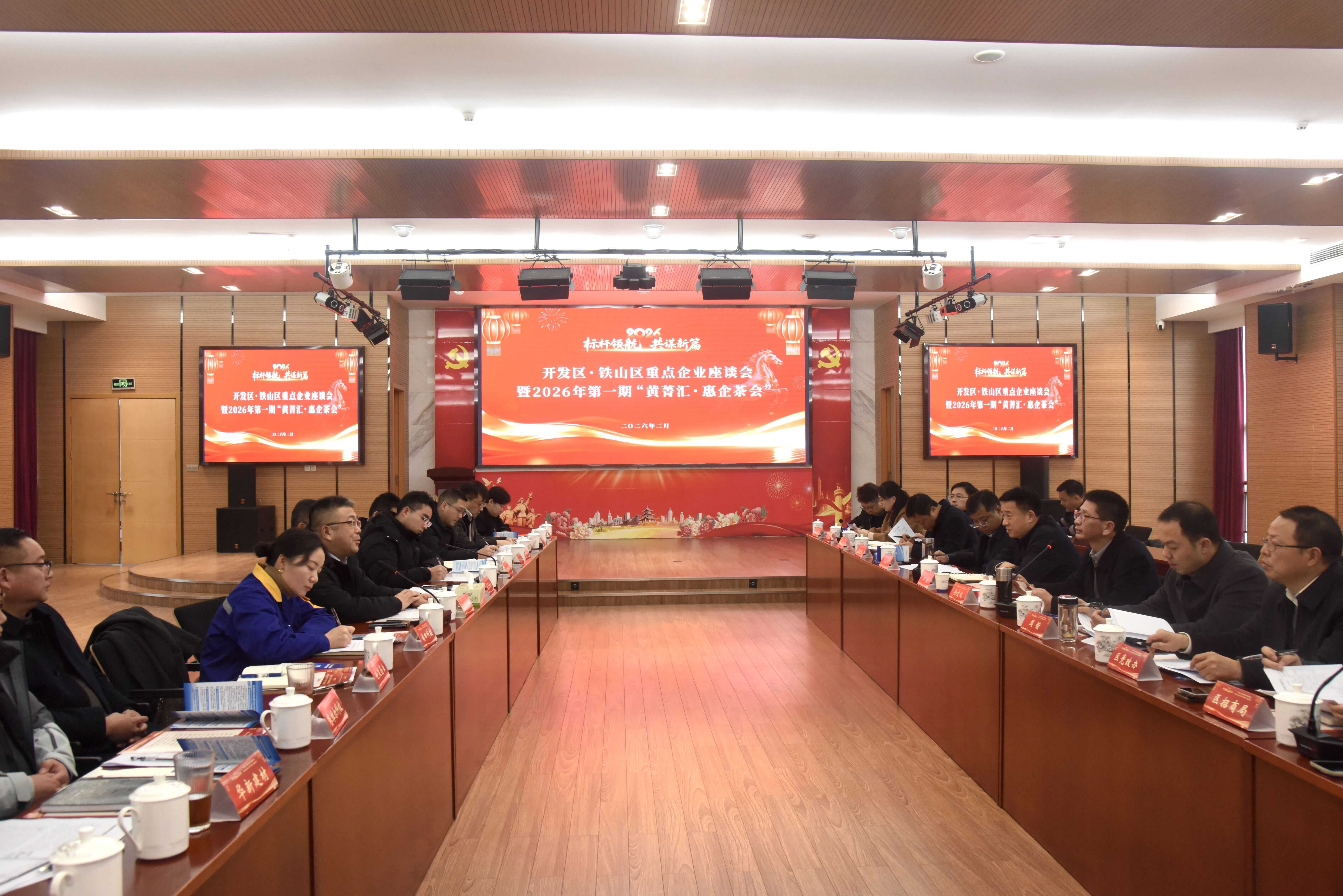 2月6日,開發區·鐵山區企業家代表座談會暨2026年第一期“黃菁匯·惠企茶會”召開,開發區黨工委書記、管委會主任、鐵山區委書記萬鼎參加會議并講話,開發區黨工委副書記、鐵山區區長余文化主持會議。