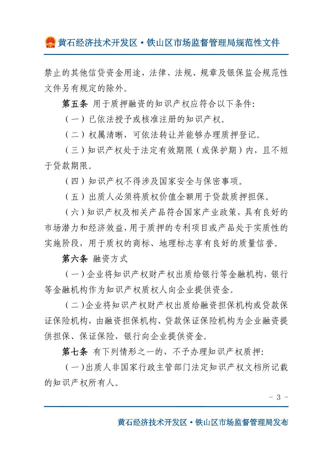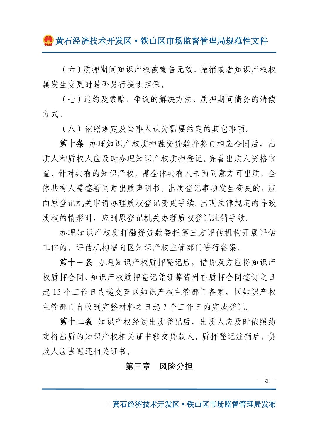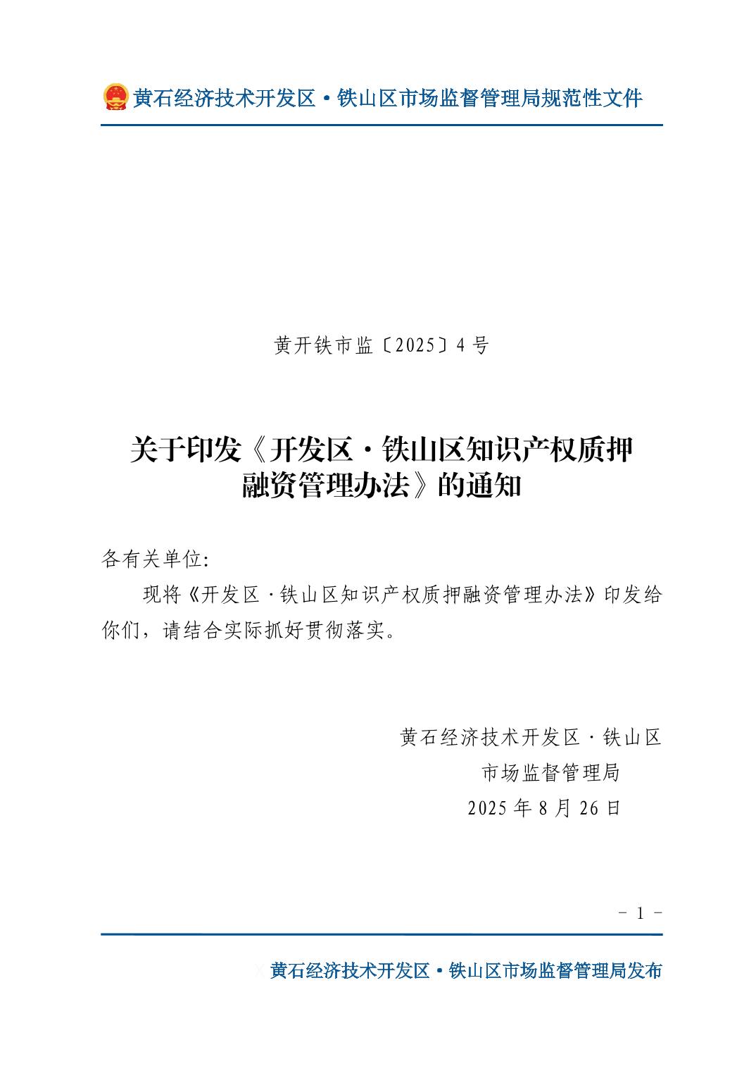 | 文件名稱 | 關(guān)于印發(fā)《開(kāi)發(fā)區(qū)·鐵山區(qū)知識(shí)產(chǎn)權(quán)質(zhì)押融資管理辦法》的通知 | 文件類型 | 規(guī)范性文件 |