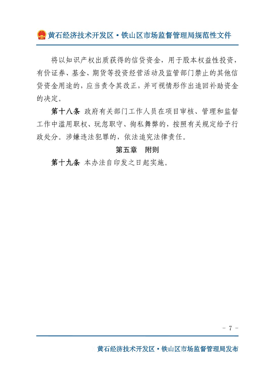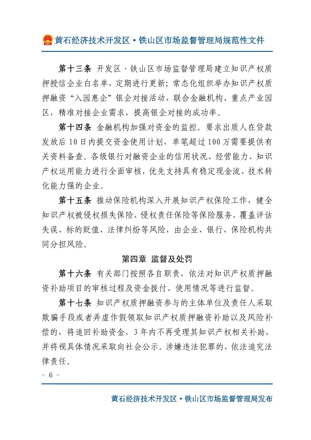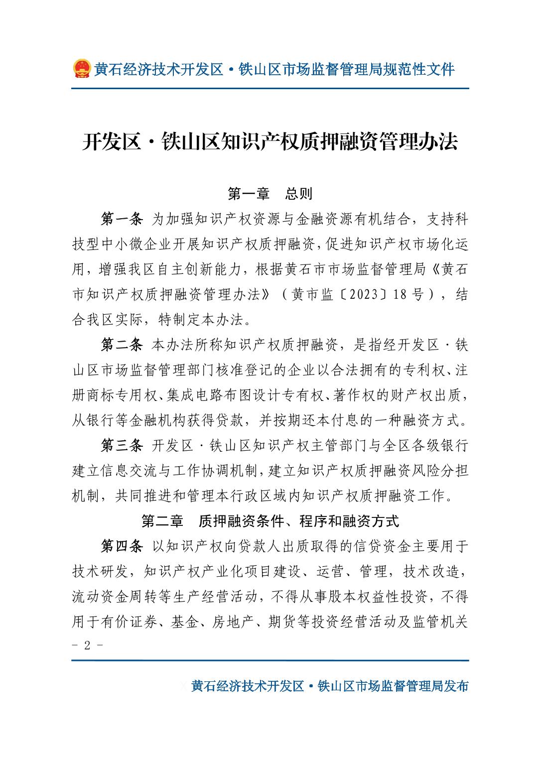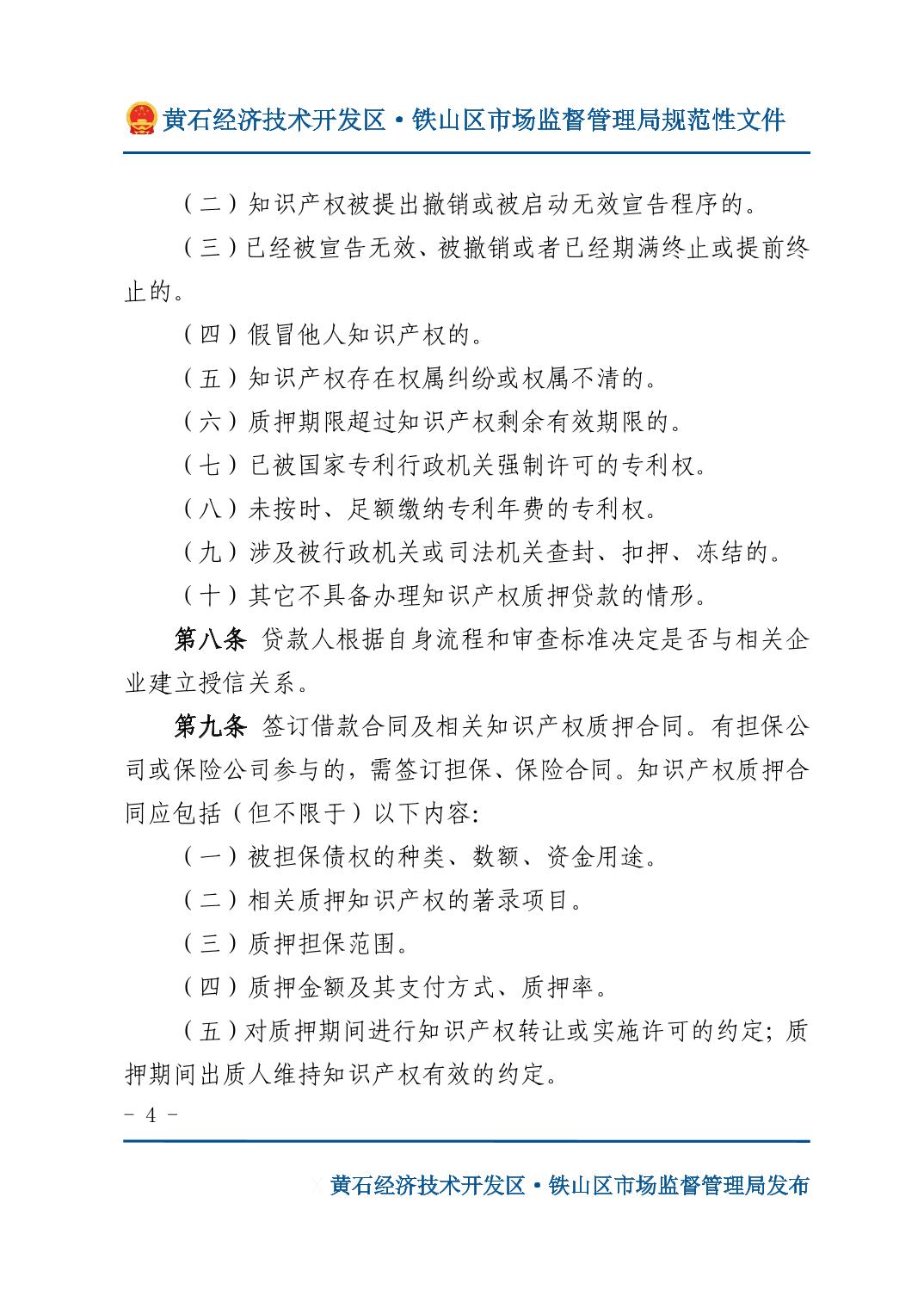 | 文件名稱 | 關(guān)于印發(fā)《開(kāi)發(fā)區(qū)·鐵山區(qū)知識(shí)產(chǎn)權(quán)質(zhì)押融資管理辦法》的通知 | 文件類型 | 規(guī)范性文件 |